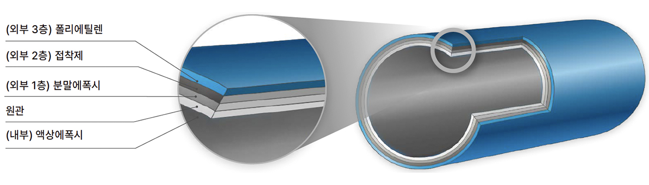 직관과 동일한 피복 품질 기준을 적용하여 배관 시스템 전체의 내식성과 절연 성능을 안정적으로 유지할 수 있습니다.